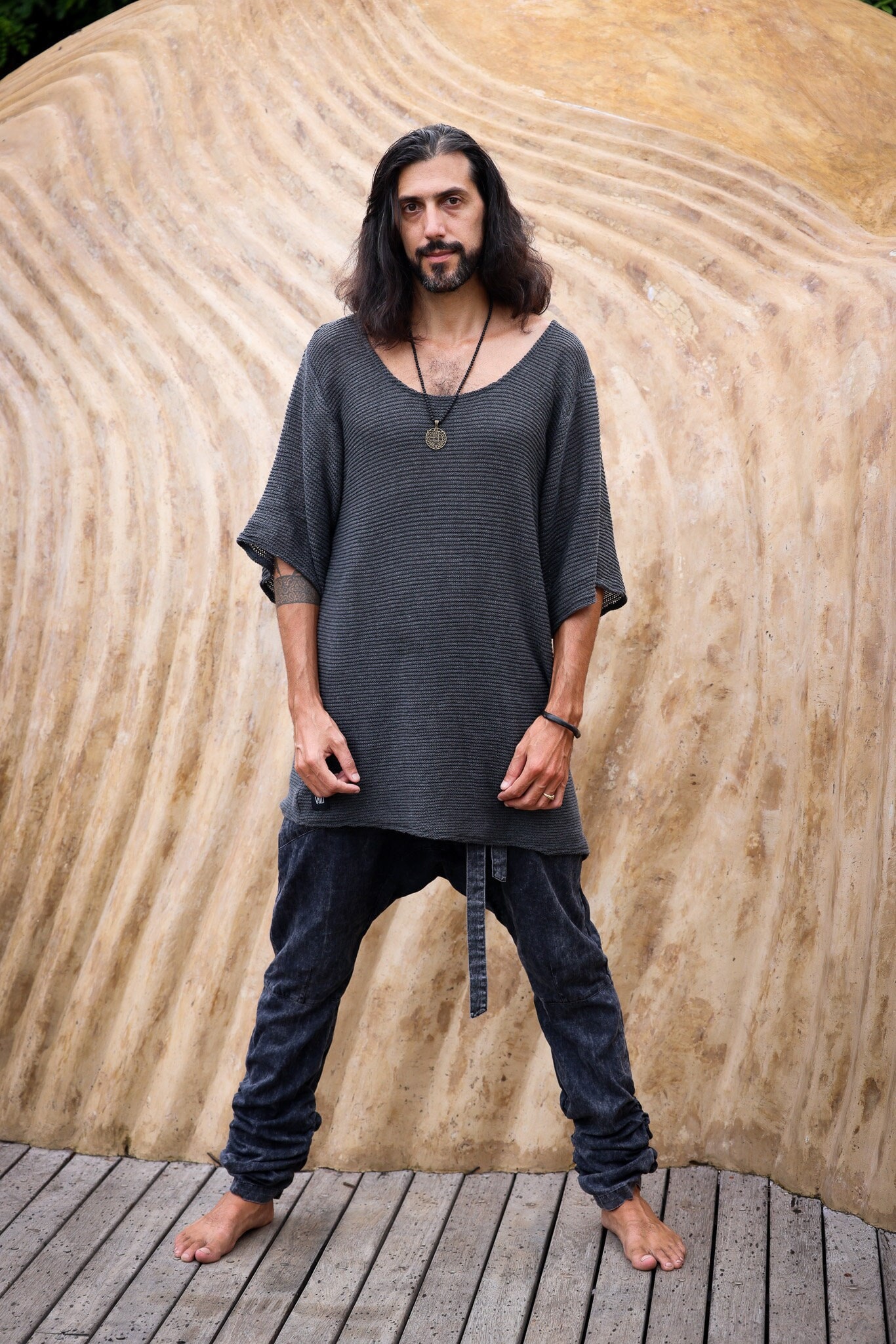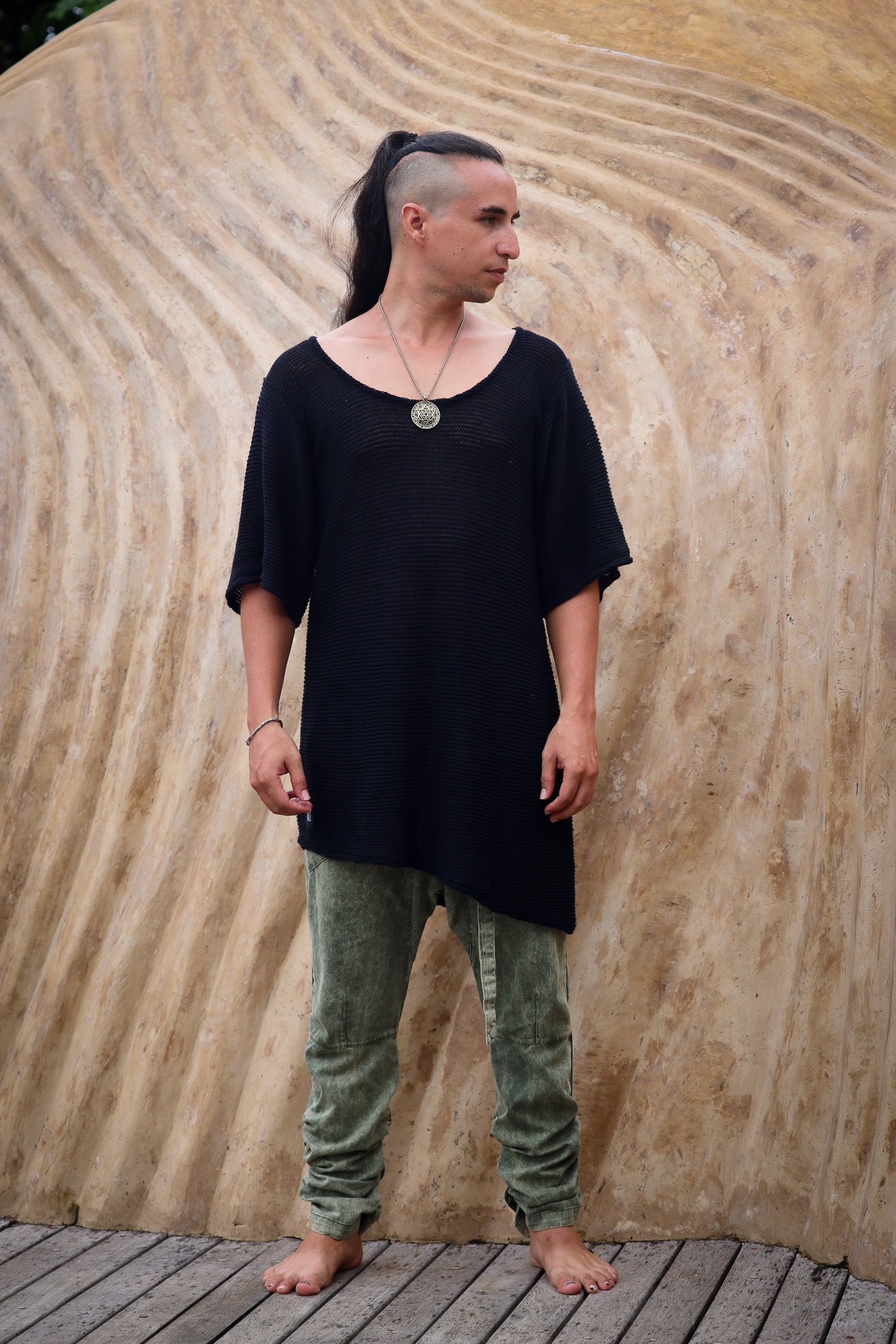 Hand Knit Cotton Tshirt Men: Bohemian Beach Shirt