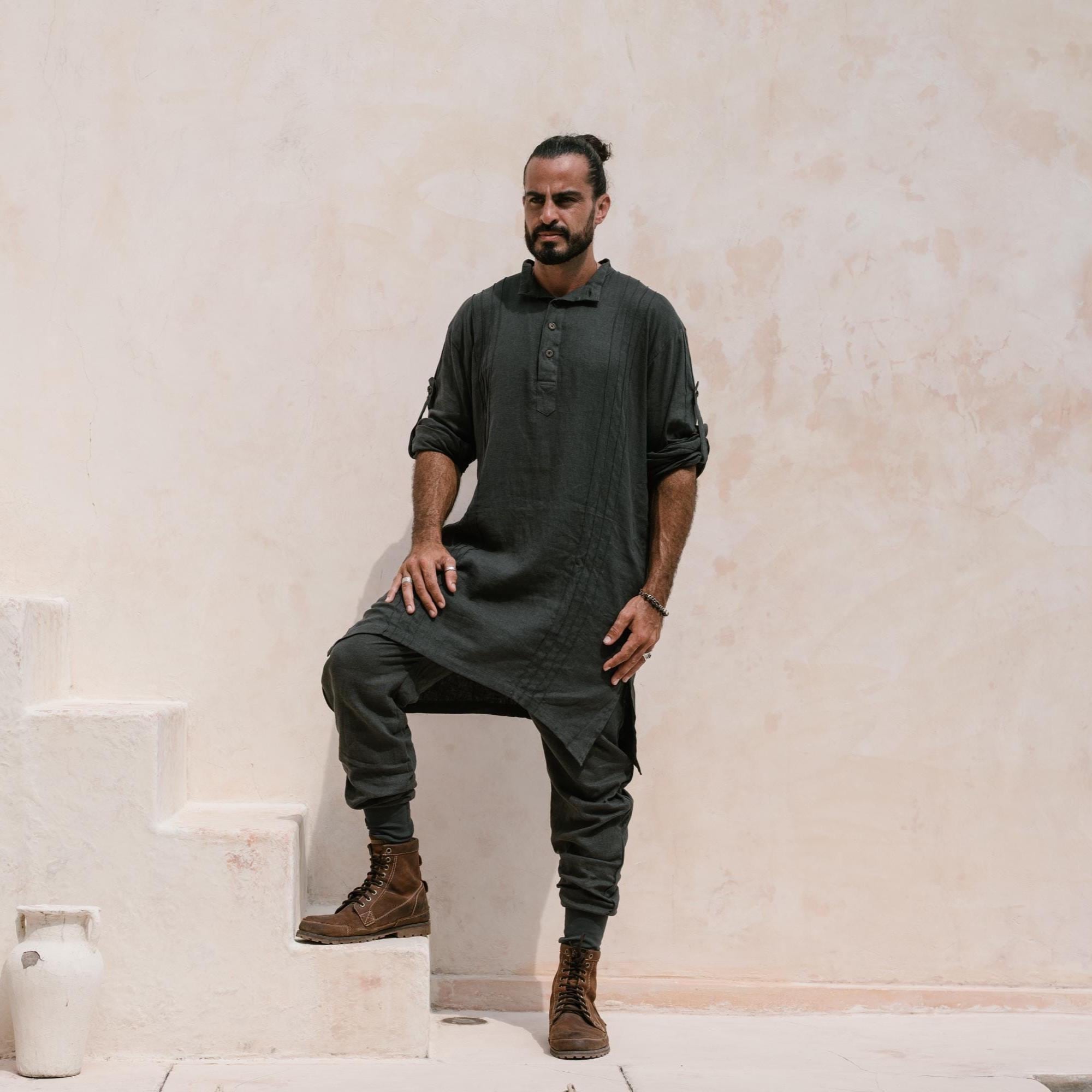 KAFTAN Linen – Oversized Kurta Boho Shirt / Handmade kurta / Spiritual Clothing Men / Artisan Men Fashion / Bohemian Style Men / Ibiza Style / Linen Clothing / Linen Clothes Men / Linen Shirt man