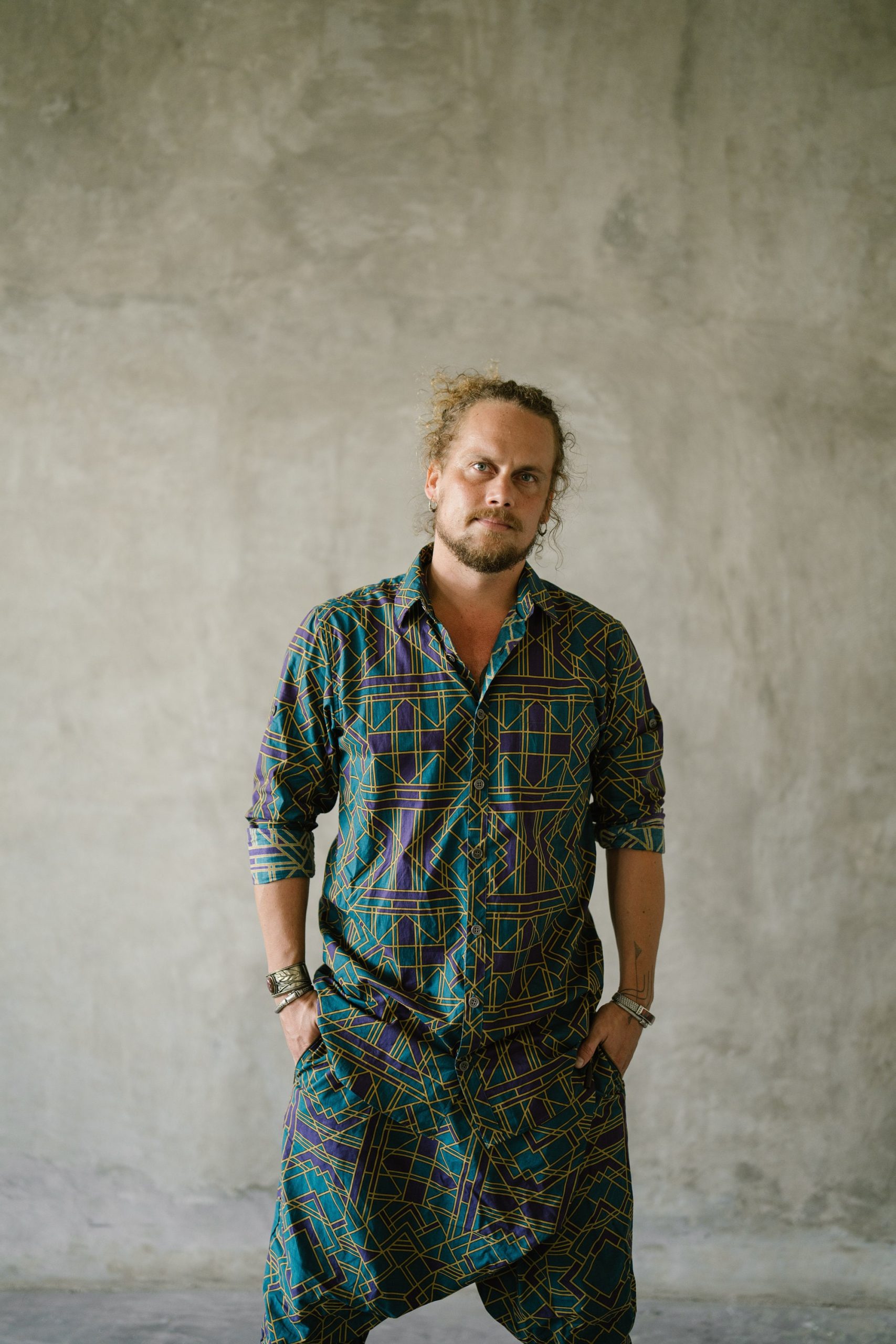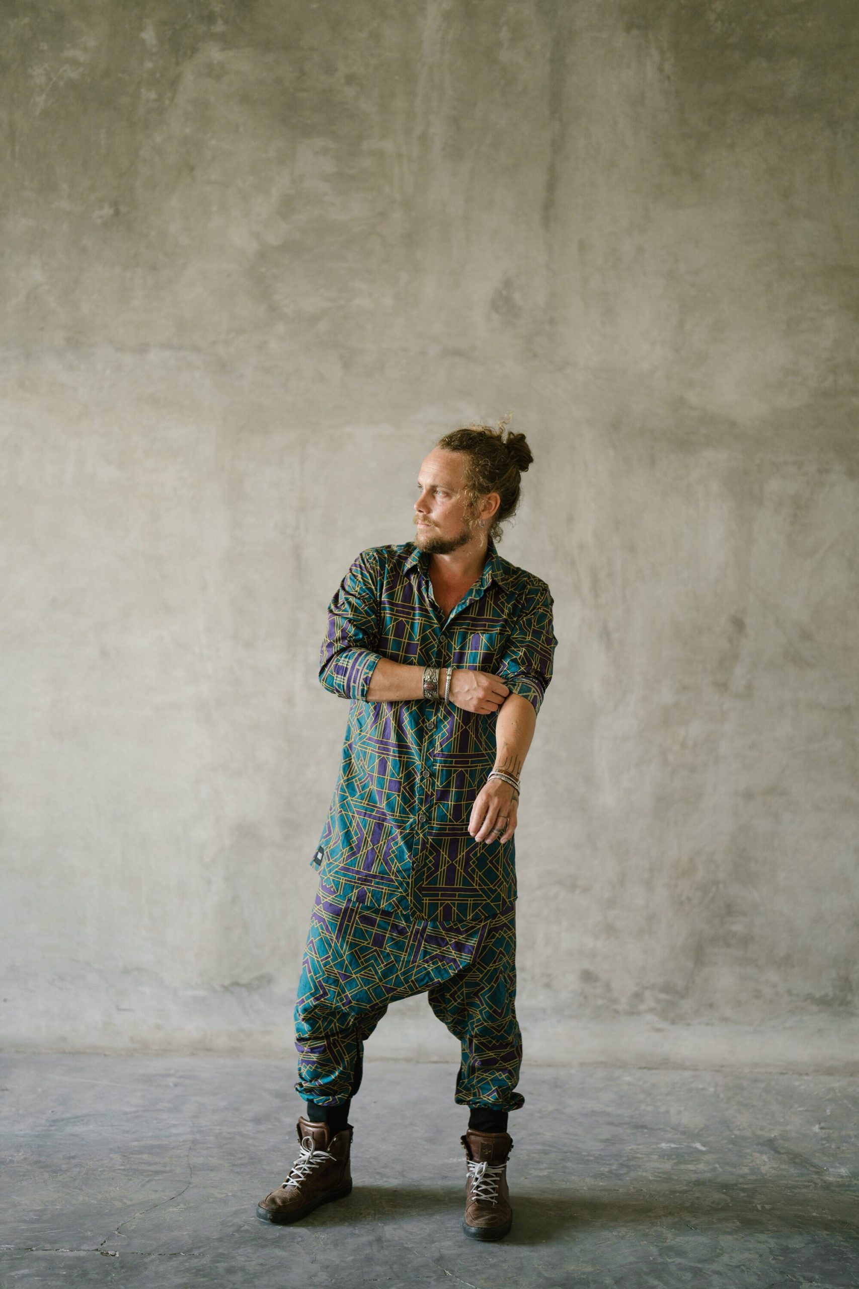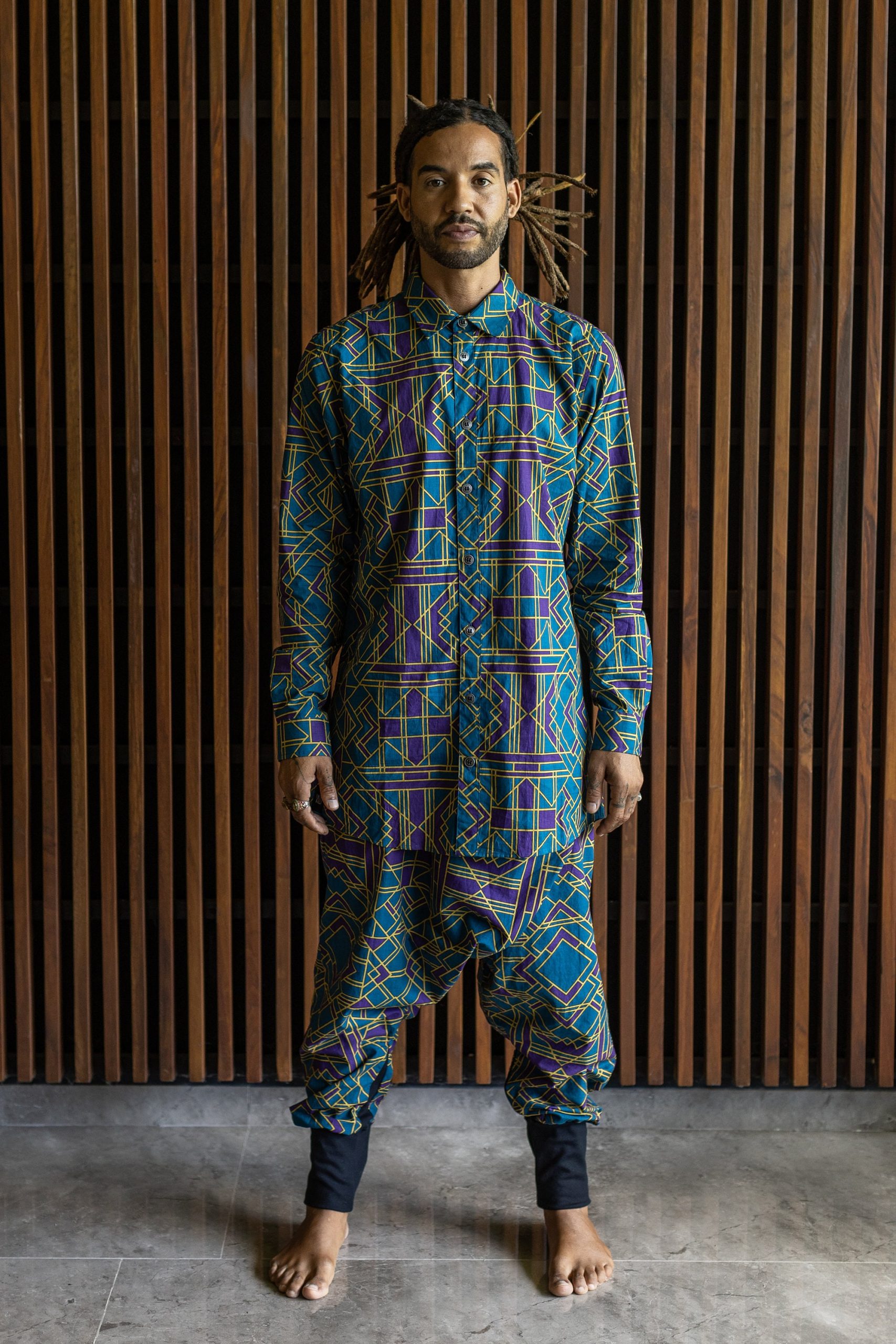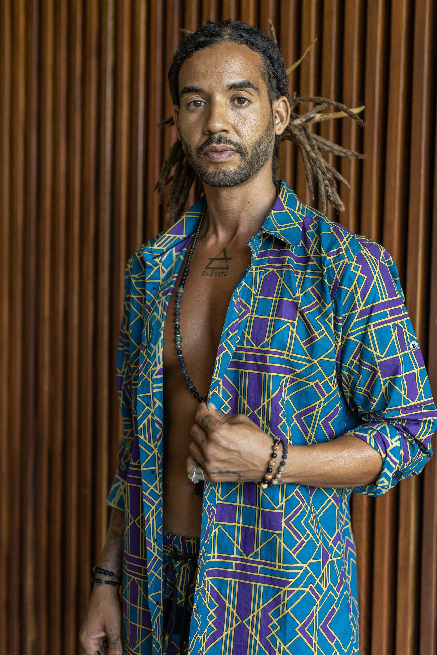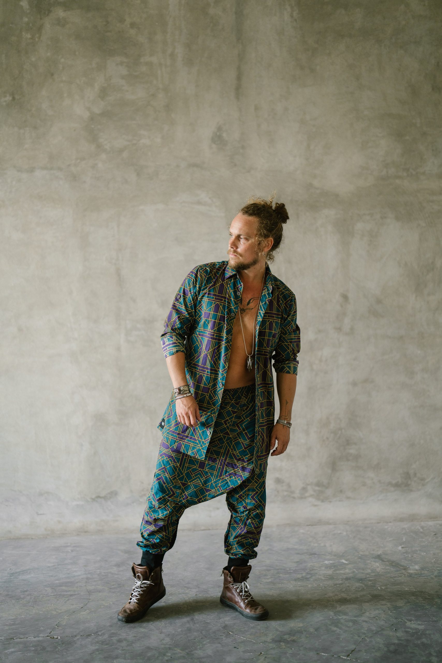 Mens Festival Shirt, Ceremonial Shirt, Tribal Man Button-Up Shirt, Blue Button Up Shirt Men, Sacred Geometry Clothing, Festival Clothing, Boho Clothes, Tribal Festival Style