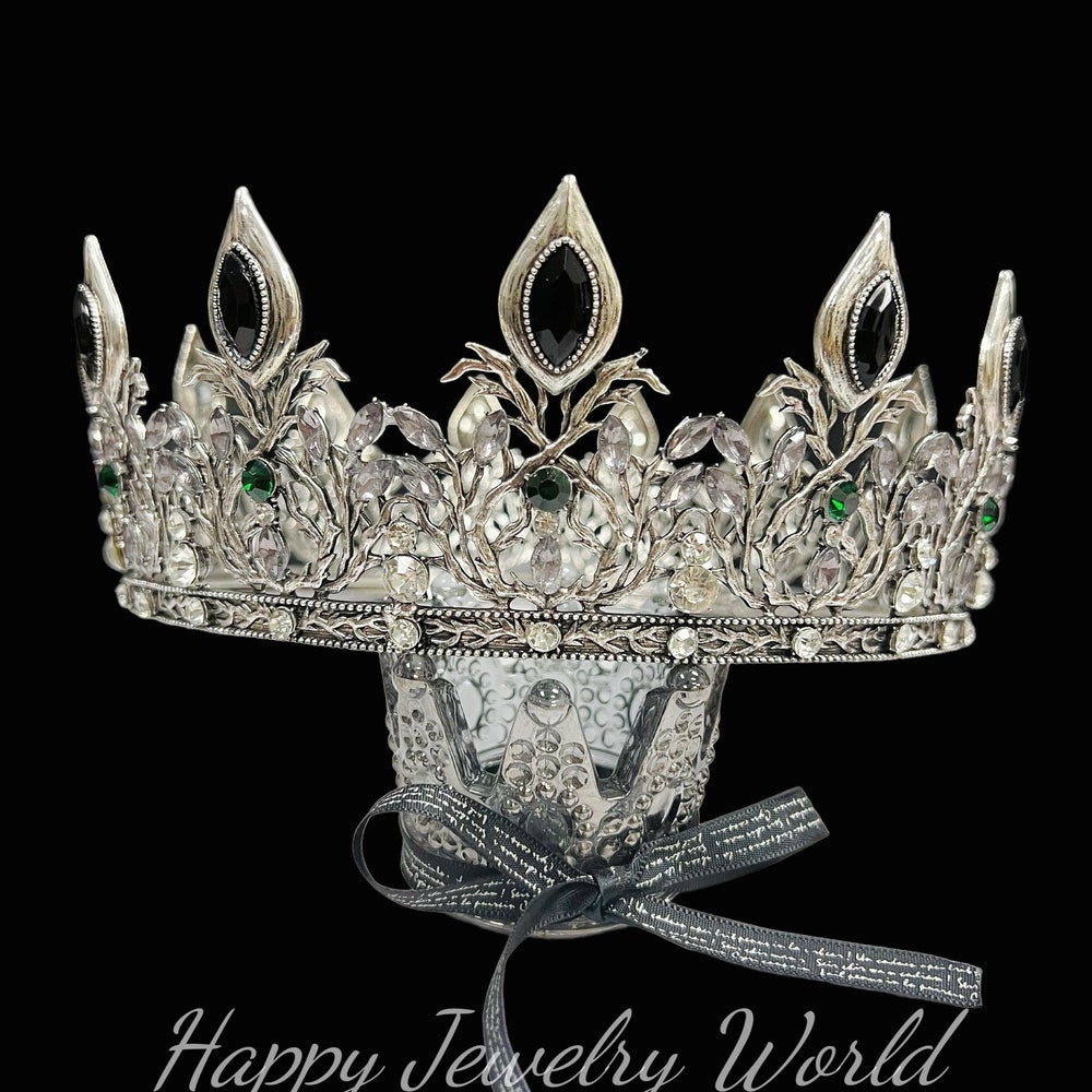 Vintage Silver King Crown, Black Crystal Crown, Silver Knight Crown, Royal Prince Crown, Medieval Crown for Men's, Halloween Party Accessory quantity